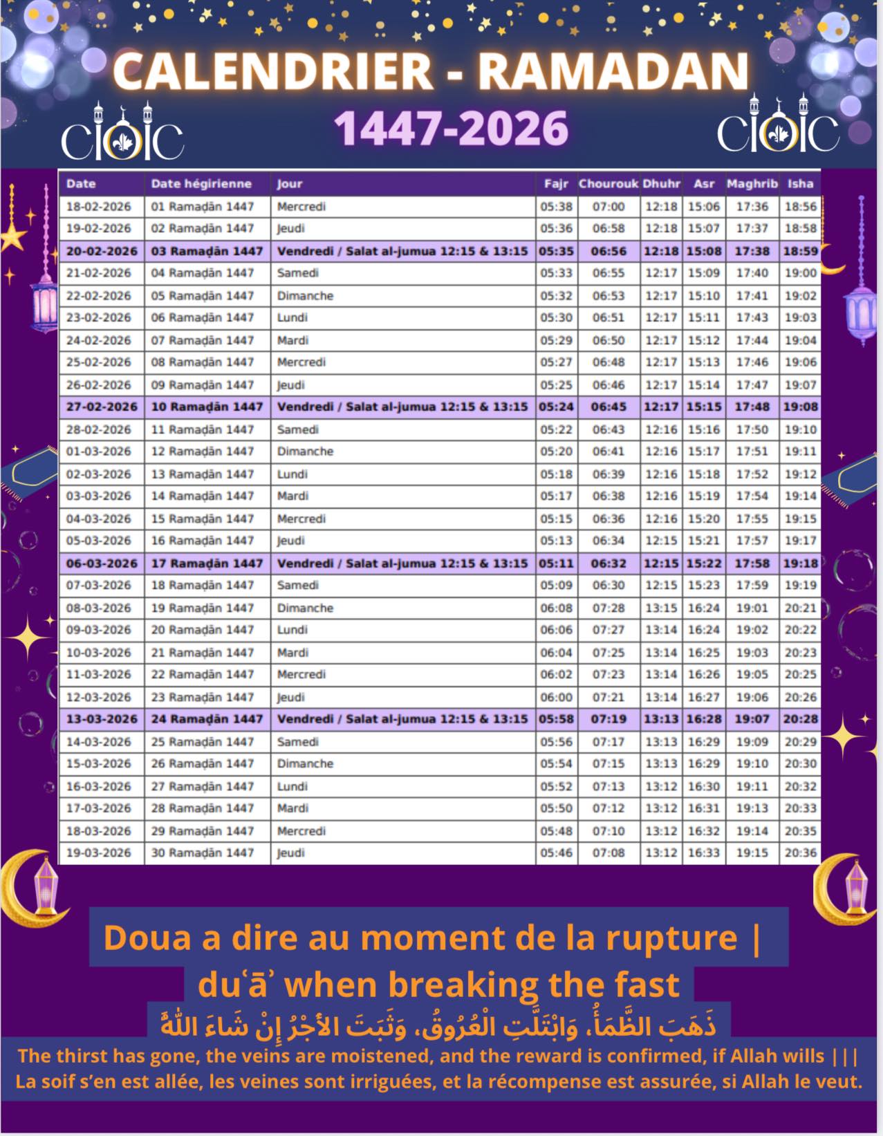 Daily (during Ramadan)