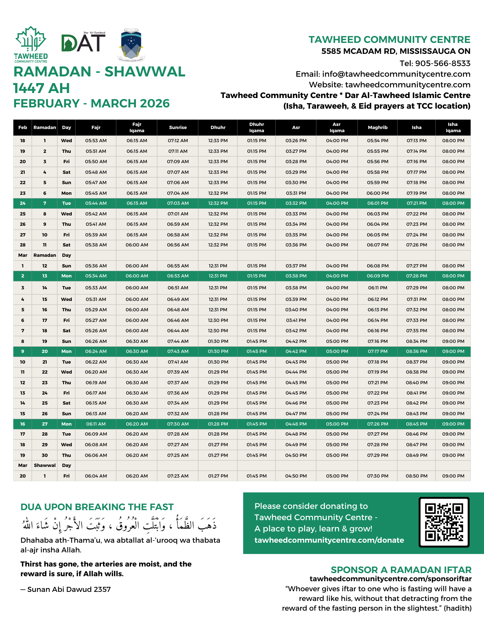 As we enter this sacred time of reflection and community, we invite you all to join us at the Tawheed Community Centre (5585 McAdam Road) tonight, Tuesday, February 17, for Isha prayers followed by Taraweeh.