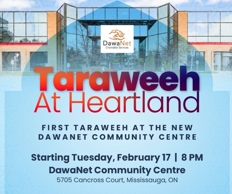 Alhamdulillah, Taraweeh at Heartland is back and will be held nightly at the New DawaNet Community Centre.