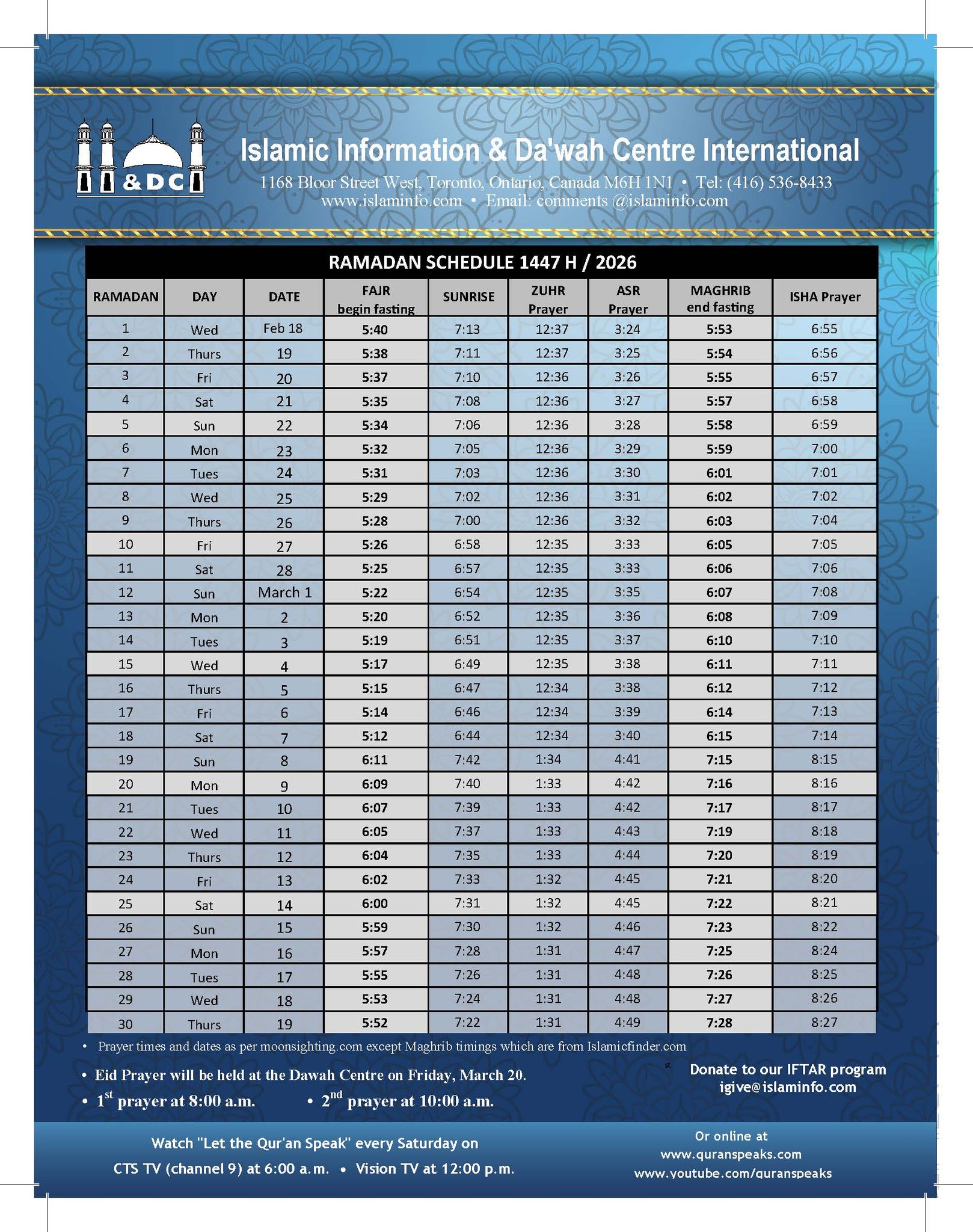 Ramadan Mubarak! Our first taraweeh will be on Tuesday night after Isha, Insha Allah, and our first day of fasting is Wednesday.