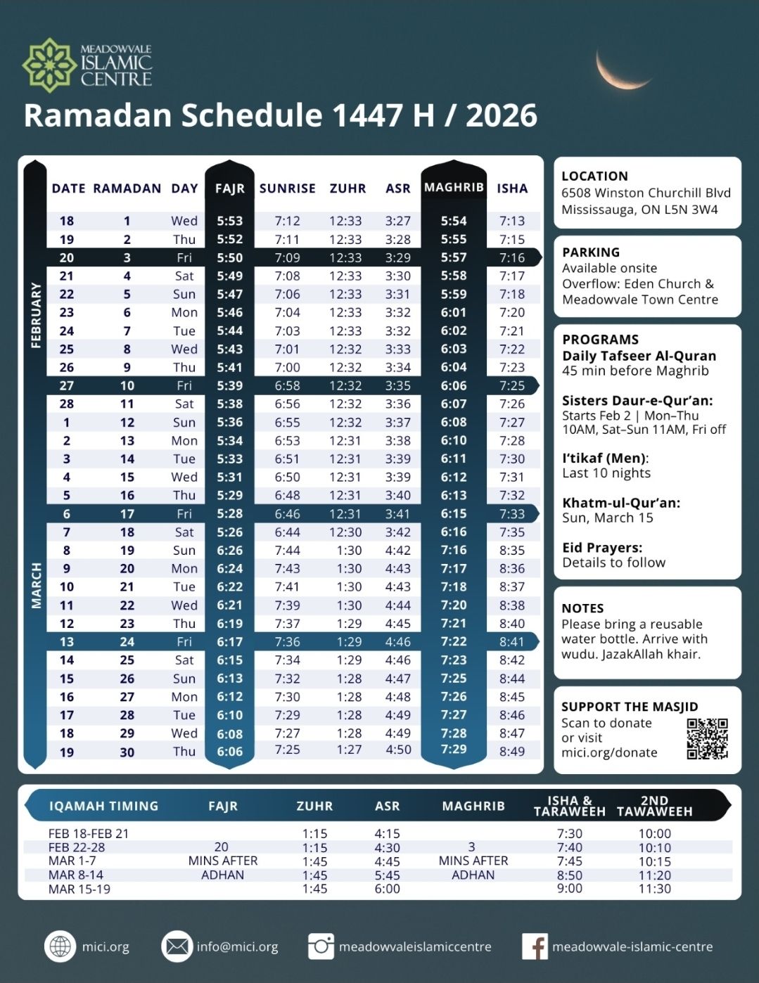 First Taraweeh: Tuesday February 17, 2026