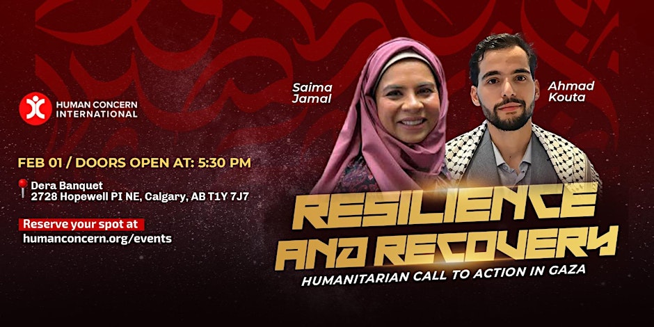 In this event Human Concern International will highlight the journey of humanitarian and advocacy work of two people: Ahmed Kouta, a genocide survivor, a healthcare aid worker from Gaza and Saima Jamal, a well-known community worker, humanitarian and activist from Calgary.