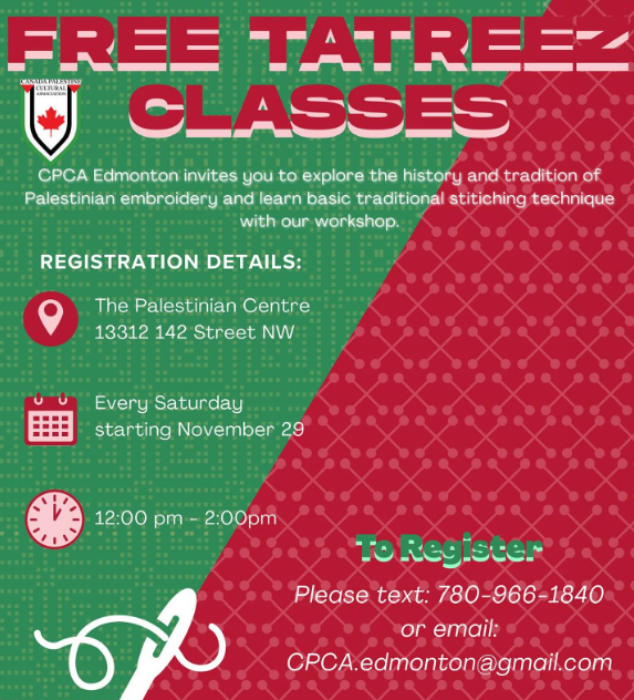 • Canada Palestine Cultural Association (CPCA) Free Tatreez Lessons (Traditional Palestinian Embroidery)