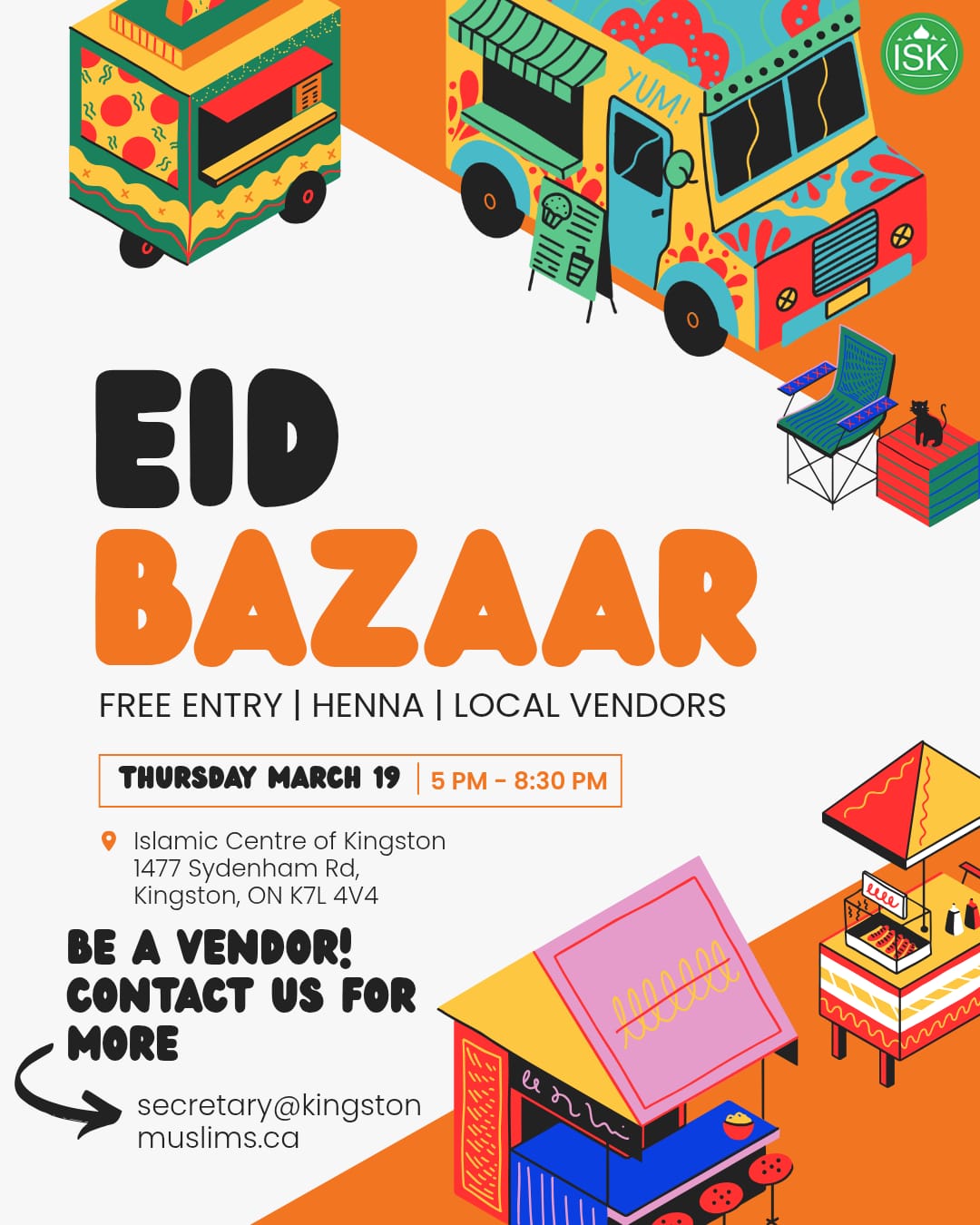Interested in having a booth? Limited vendor spots are still available. Please email secretary@kingstonmuslims.ca for more details.