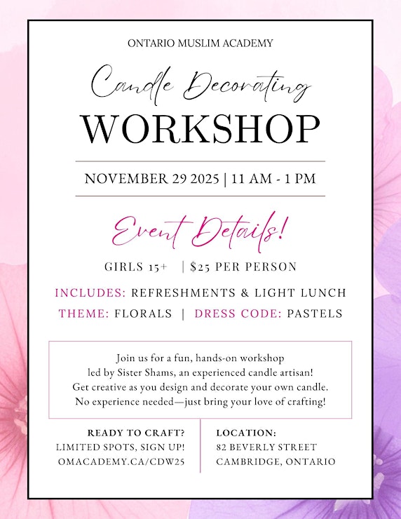 Ontario Muslim Academy Candle Decorating Workshop (Sisters Aged 15 and Up)