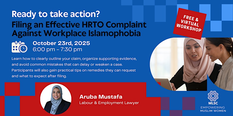 Learn how to effectively file a complaint with the HRTO against workplace Islamophobia in this online event!