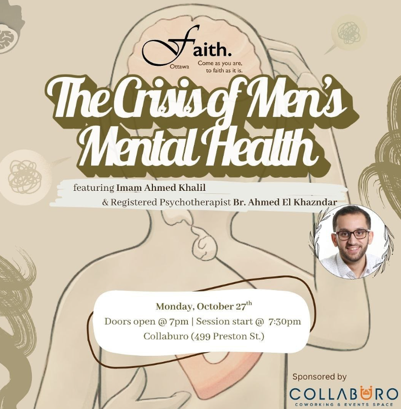 It is reported that 1 in 10 men experience depression or anxiety, men die by suicide four times more often than women, and the group with the highest number of suicide in Ottawa is Muslim men