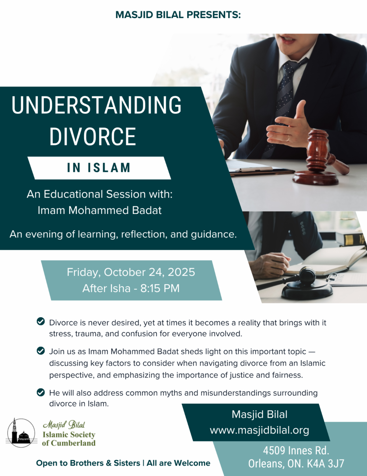 He will also address common myths and misunderstandings surrounding divorce in Islam.