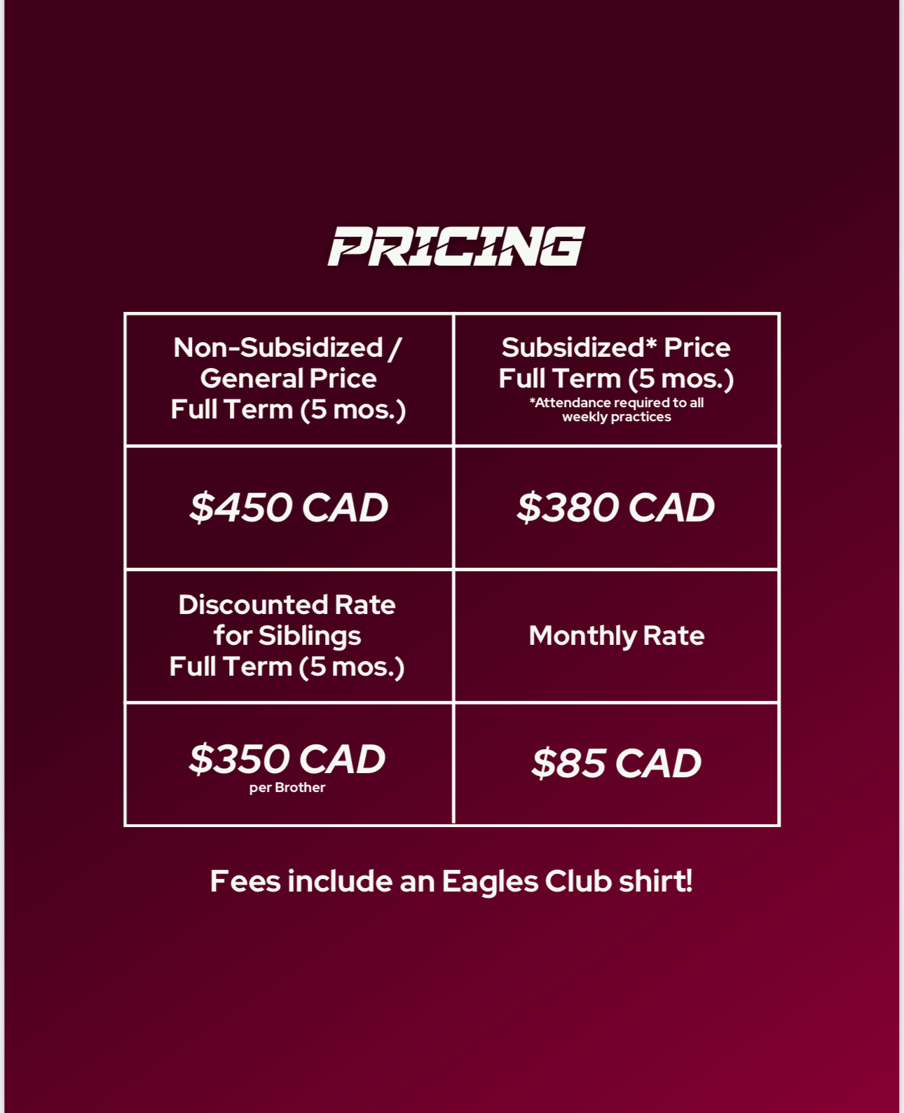 ? Includes: Weekly training + Official OMA Eagles Club Shirt