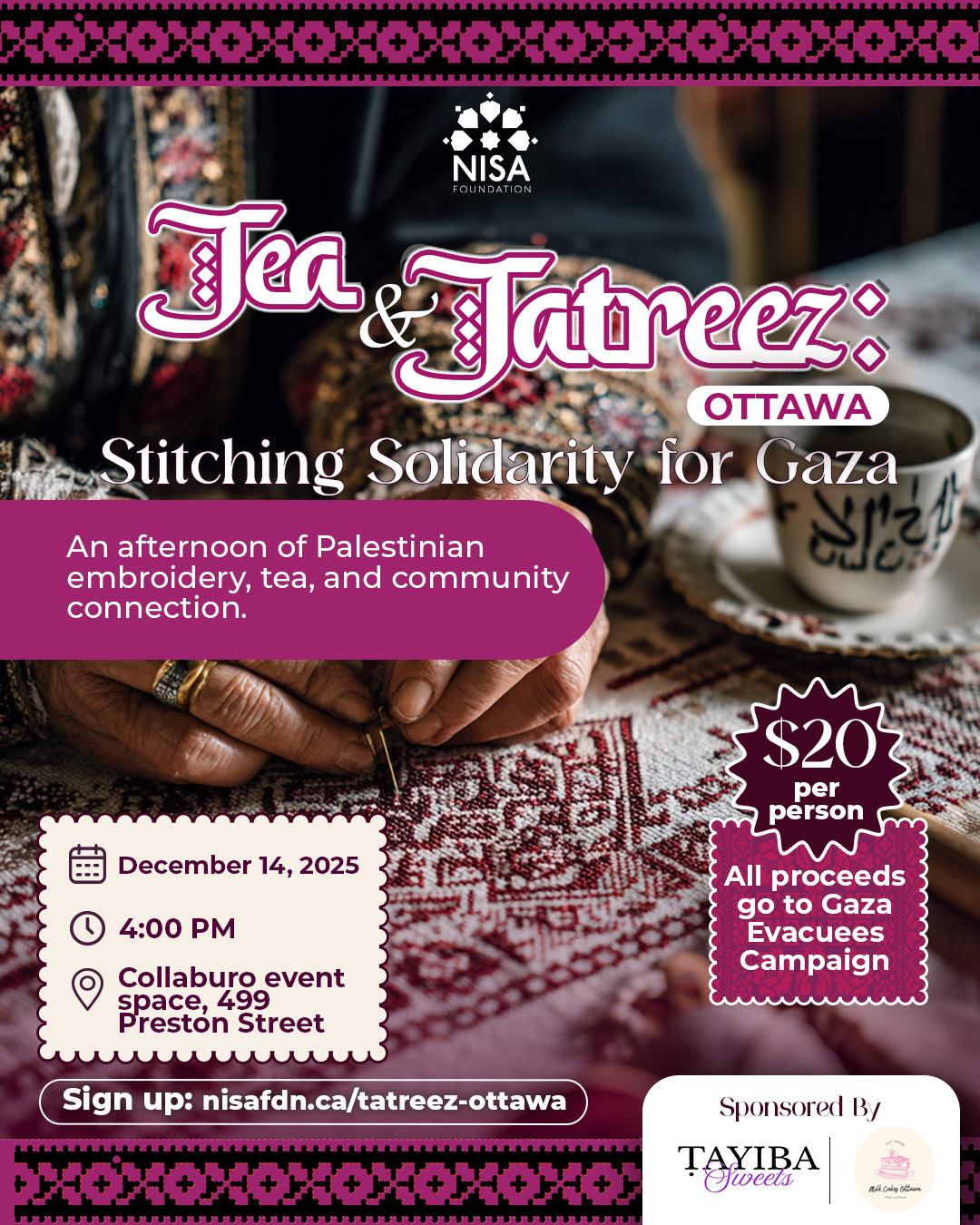 Spots are limited. Don’t miss your chance to for a night of tea and tatreez!