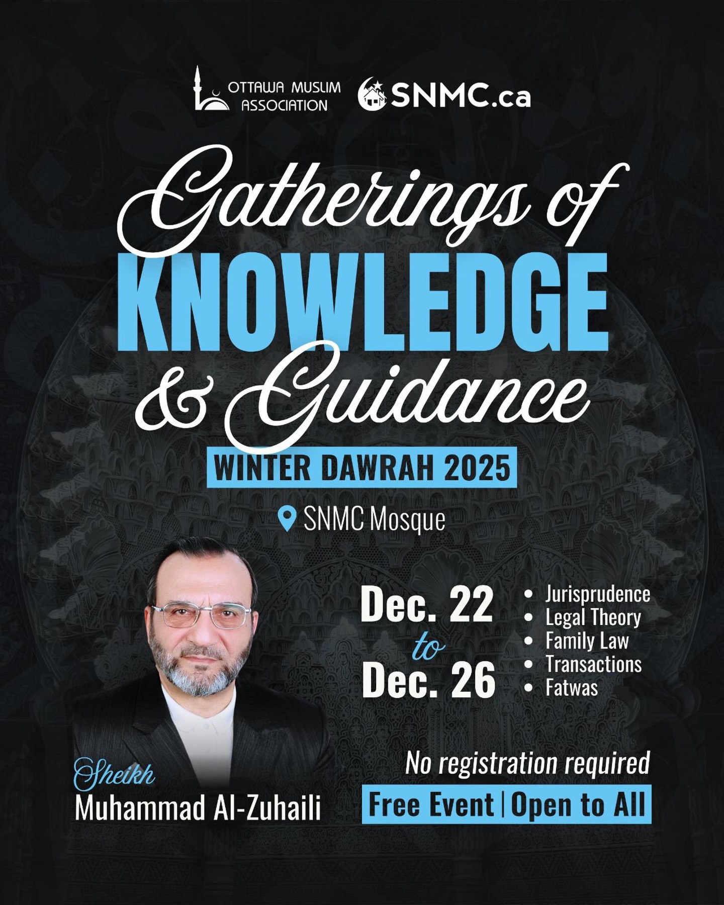 SNMC is honoured to be hosting Sheikh Muhammad Al-Zuhaili for the second part of this winter’s dawrah, Gatherings of Knowledge & Guidance.