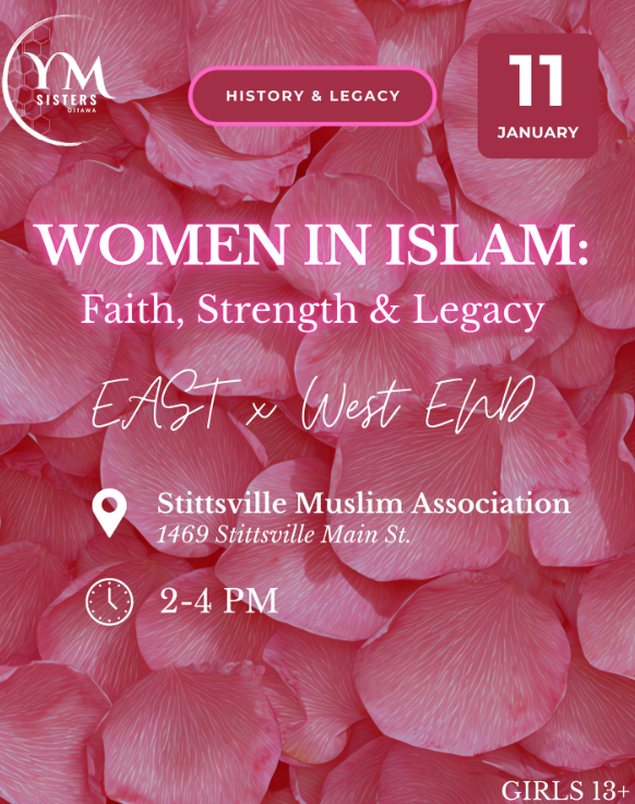 Location: Stittsville Muslim Association (Women’s Prayer Room – 1469 Stittsville Main St, ON K2S 1E3)