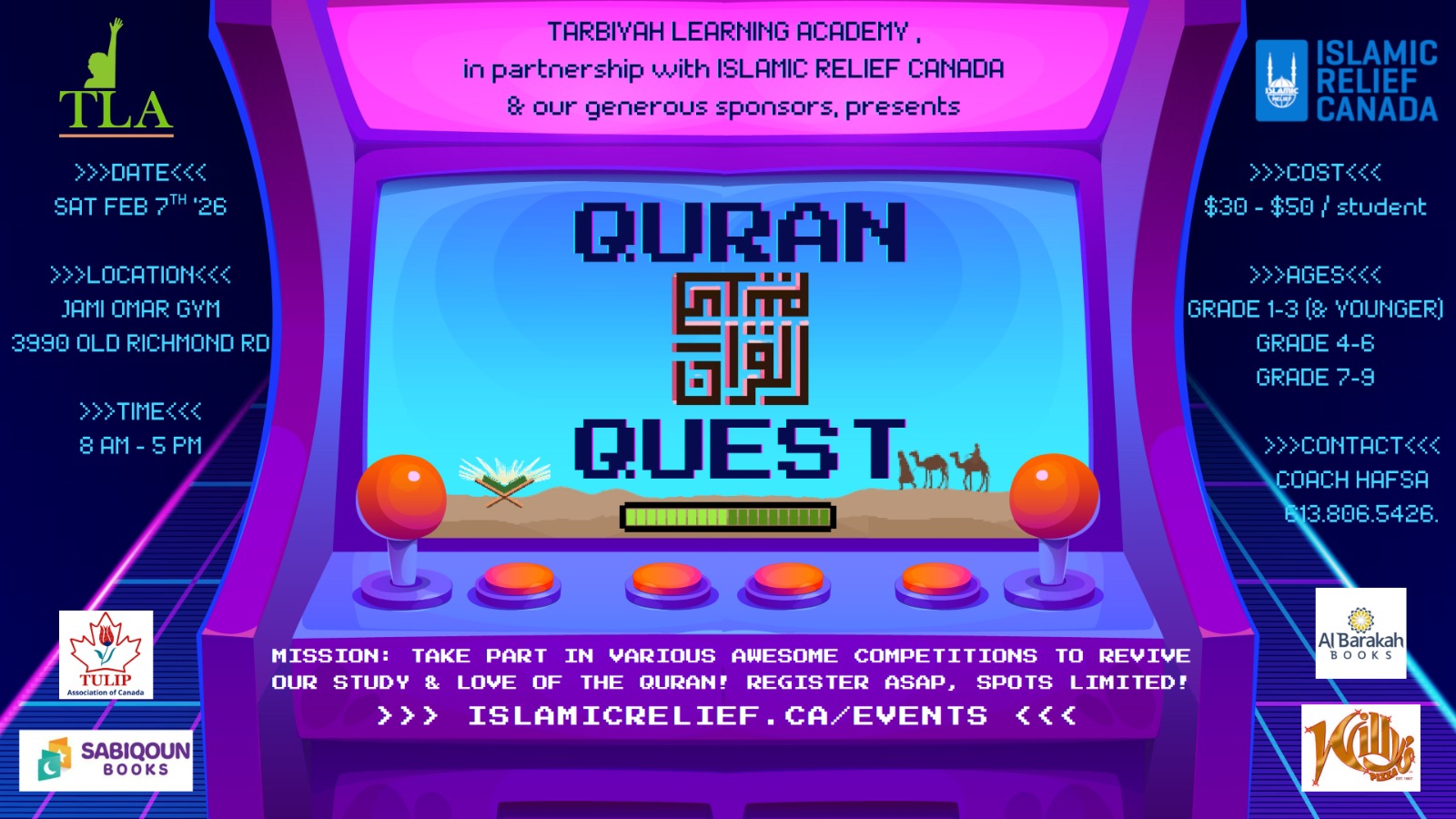 Quran Quest 2026 is a one-day Qur’an competition for children and youth, designed to encourage excellence (ihsan) and a deeper connection with the Qur’an in a supportive community setting.