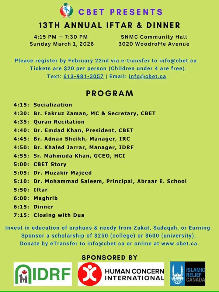 Canada Bangladesh Education Trust Iftar Dinner (RSVP by Feb 22)