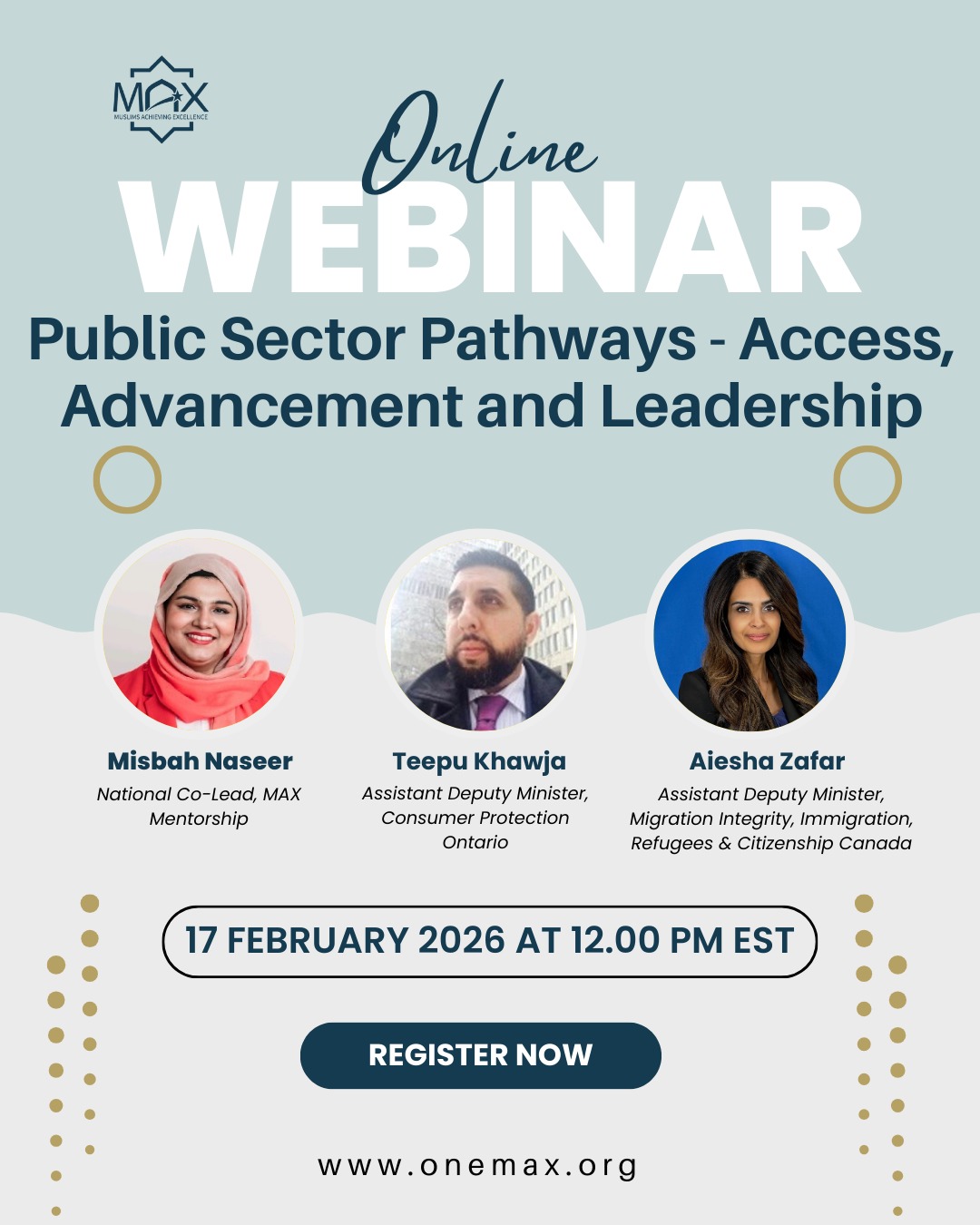 In this webinar, senior public service executives will share their perspectives on building and leading meaningful careers across different levels of governments.