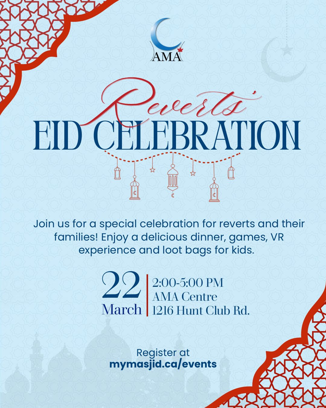 Join us for a special Eid gathering for reverts and their families! Enjoy a delicious dinner, a virtual reality experience of Makkah, and other fun activities for all ages. We will also have games and loot bags for kids. Spend the afternoon in joy, reflection, and community. Let us mark the end of Ramadan with gratitude and good company!