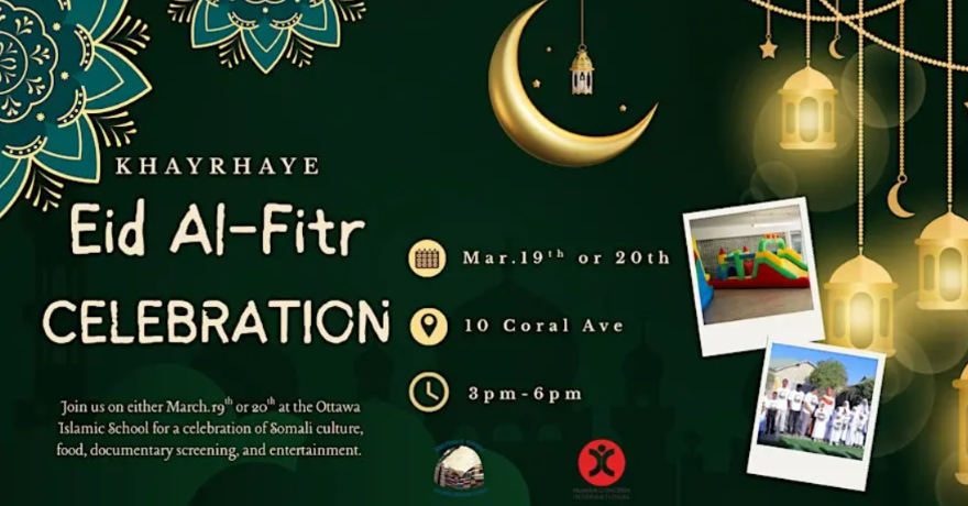 Khayrhaye and HCI will host an Eid Al-Fitr celebration at the Ottawa Islamic school on either Mar.19th or Mar.20th from 3pm-6pm.