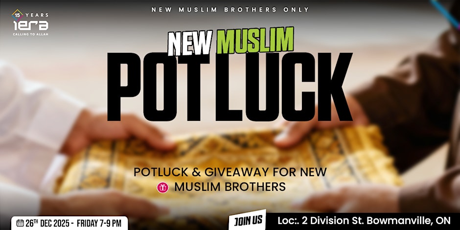 We are inviting you to the iERA Canada New Muslim Brothers Potluck for a day of bonding and spiritual growth, catered specifically for new Muslims and their mentors.