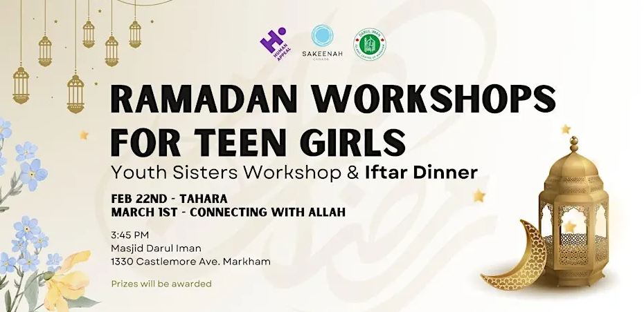 Calling all teen girls! Join us for an informative and enlightening afternoon of learning and sisterhood at this special workshop with iftar and prize giveaways!