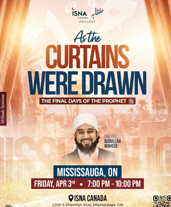 Join us for As the Curtains Were Drawn: The Final Days of the Prophet ﷺ with Shaykh Abdullah Waheed, as we reflect on the profound lessons from the closing chapter of the life of our beloved Messenger ﷺ.