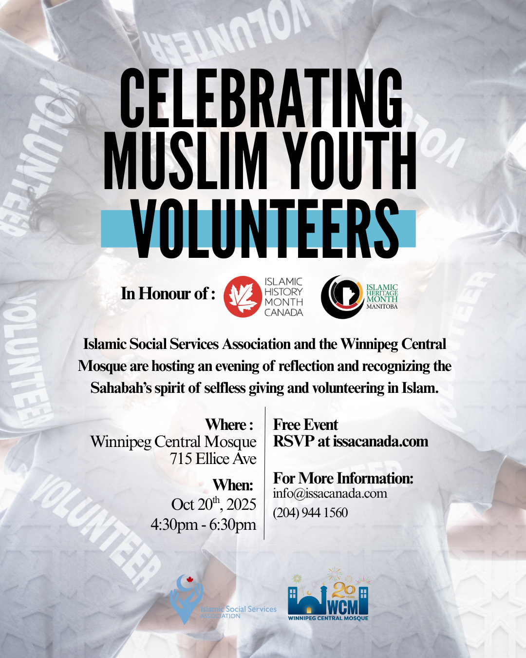 Hosted by the Islamic Social Services Association (ISSA) in collaboration with Winnipeg Central Mosque, Islamic History Month Canada, and Islamic Heritage Month Manitoba