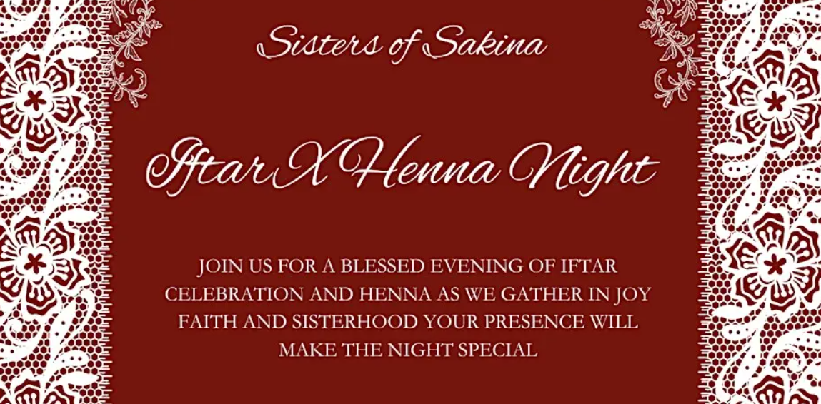 Get ready for a super fun evening filled with tasty Iftar vibes and beautiful henna designs. Whether you're here to chill, chat, or get inspired by the amazing henna art, this event's got you covered. Let's come together in person with some good vibes, and celebrate in style. Don't miss out on this awesome Iftar X Henna night experience!